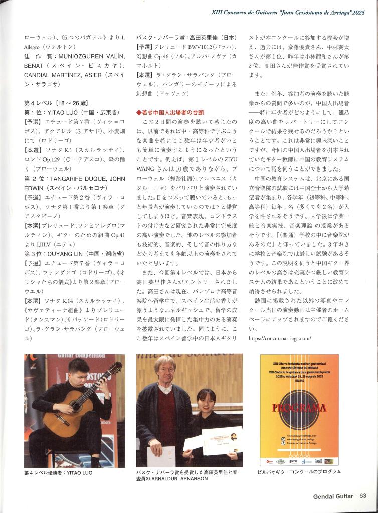 ARTÍCULO SOBRE EL CONCURSO EN LA REVISTA GENDAI DE JAPÓN DE AGOSTO DE 2025 Posted on 4 octubre, 2025 por Concurso de guitarra Juan Crisóstomo de Arriaga Comparte esto: Haz clic para imprimir (Se abre en una ventana nueva) Imprimir Me gusta Cargando...
